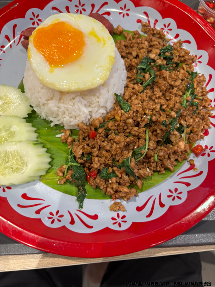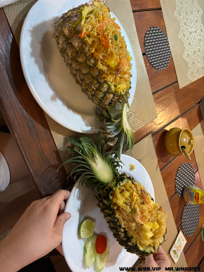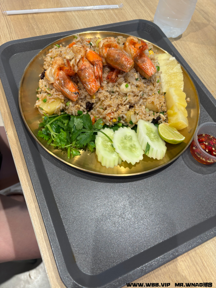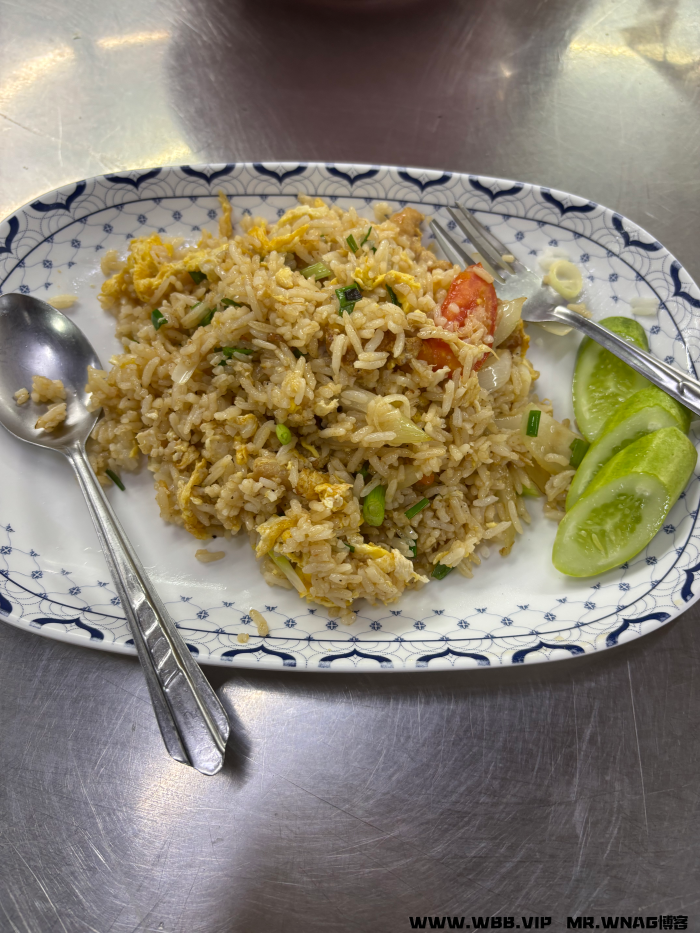 泰国的炒饭40块人民币左右,两个人一顿80-100人民币是正常的。这种饭我吃了很多次了,吃多了想吐,去泰国基本都是这种符合白皮的大杂烩拼盘。