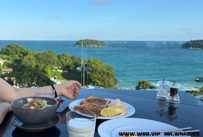 第四天,今天是普吉岛老项目跳岛游,吃完sis的早餐7点30-45分就会有车来接你。sisi酒店的早餐还凑合,风景一绝,就是有鸟不断的来骚扰。早餐和泳池都在大厅做电梯到4楼。